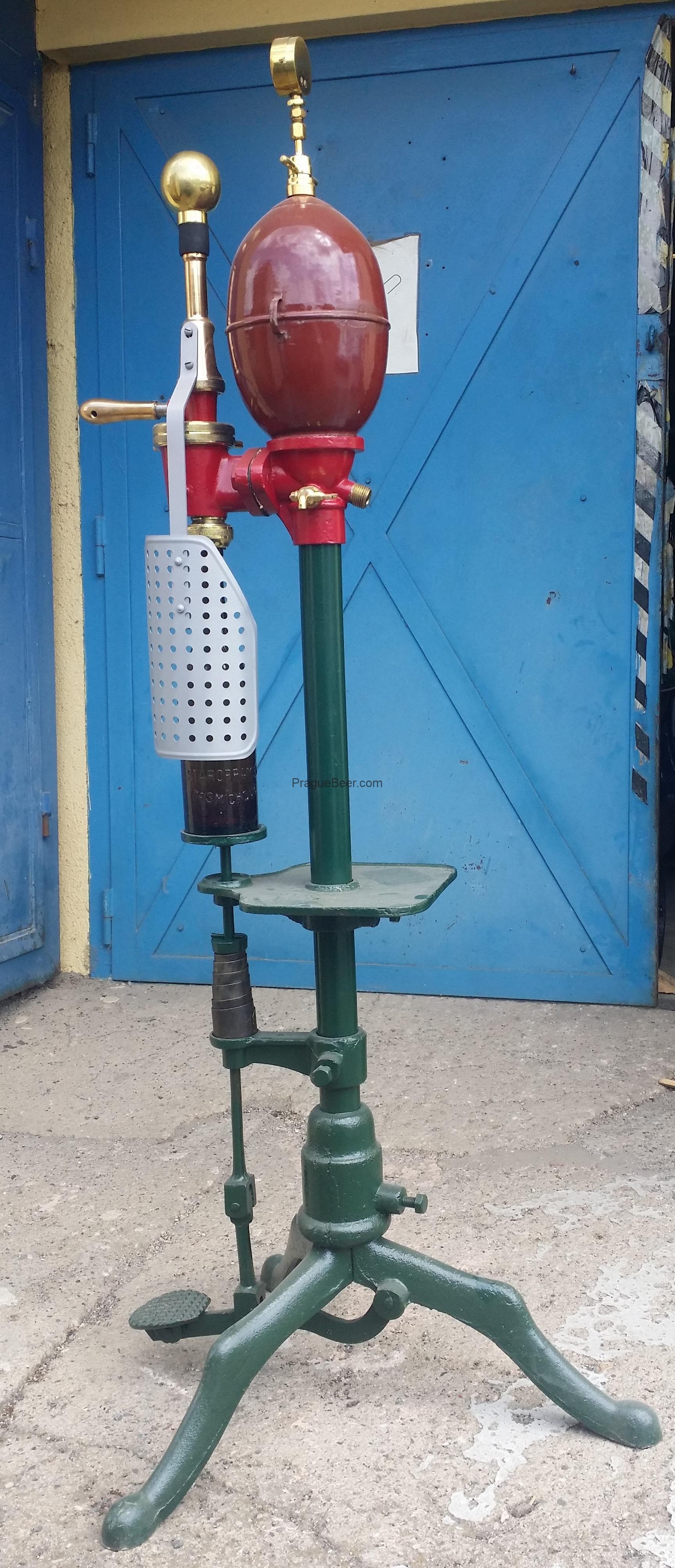 Isobarická stáčečka piva se smaltovanou baňkou a současnám korkováním.